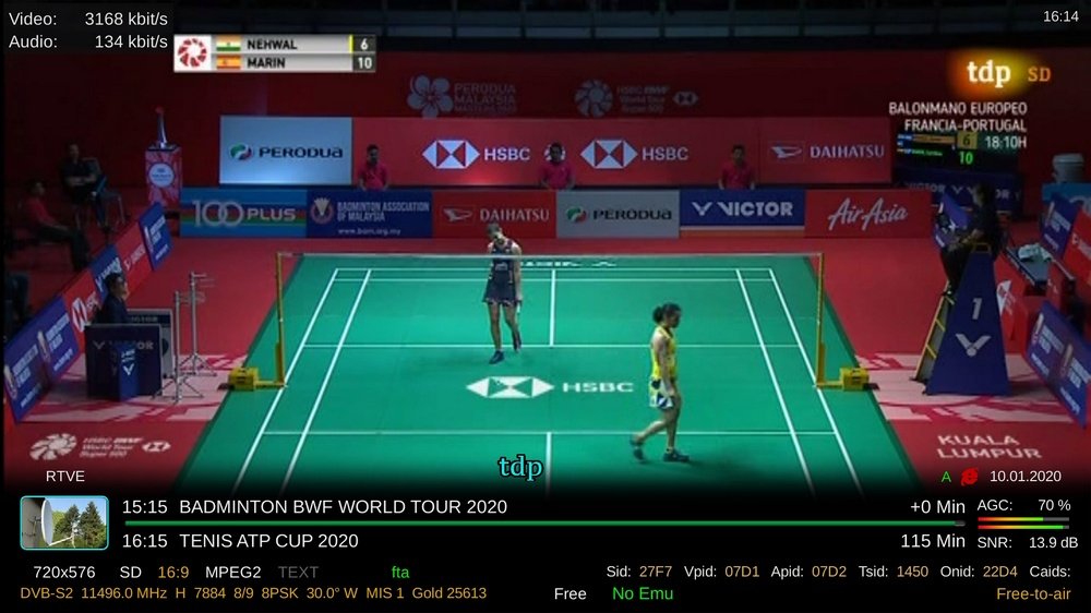 FreeSport (UK) sur Astra 28,2° Est et SuperTennis (IT sur Hotbird 13° Est.