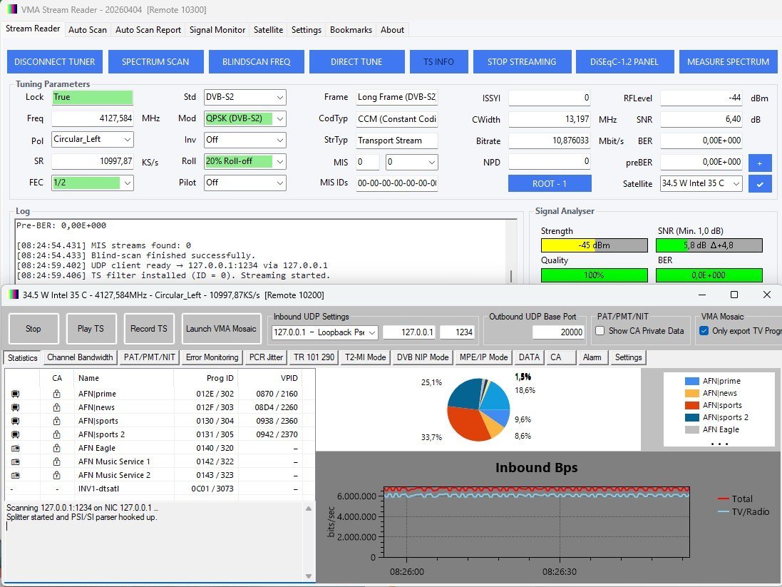 si vous pouvez voir le satellite 57° Est ( NSS12) il y a les mêmes canaux AFN en band C avec un signal plus stable et plus fort ( 8,5dB de mon lieu de reception)