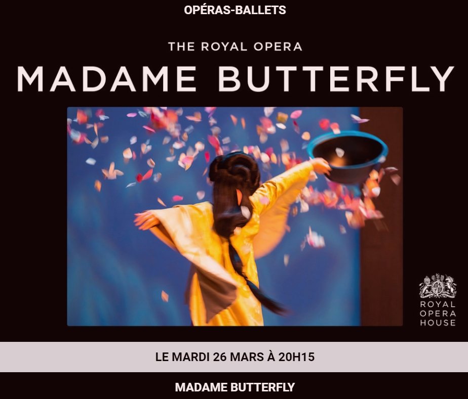 Ce mardi 26 Mars 2024 à 20h15 en direct du ROH à Londres, l'opéra "Madame Butterfly" de Puccini à: